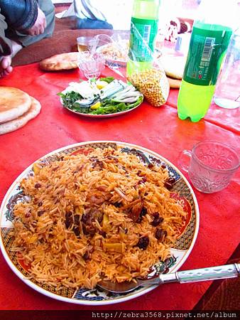 Salam告訴我是有幾間,不過價格都有點貴。看我好像有點遲疑的樣子,身旁的男子就開始跟Salam說一些事情,我不以為意,因為剛剛點的Palov就在眼前,大大的一盤。
