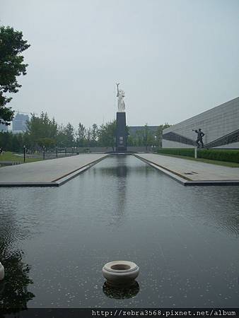 經過了萬人塚,最後,呈現在眼前的是象徵和平的女神像,長長的水池,倒映著女神那柔美的身姿,要用多少時間,要用多少金錢,